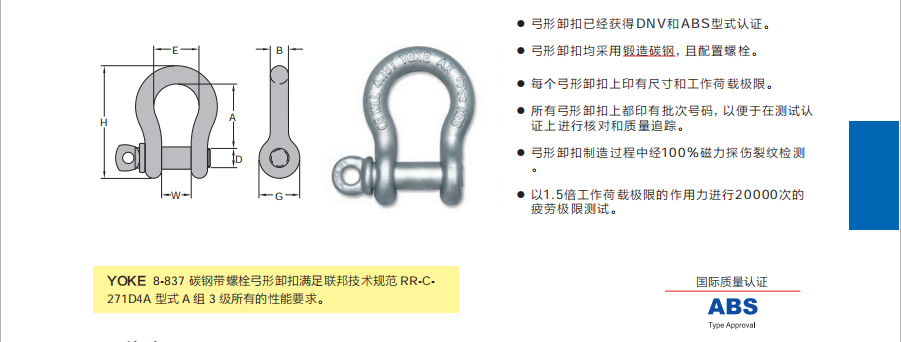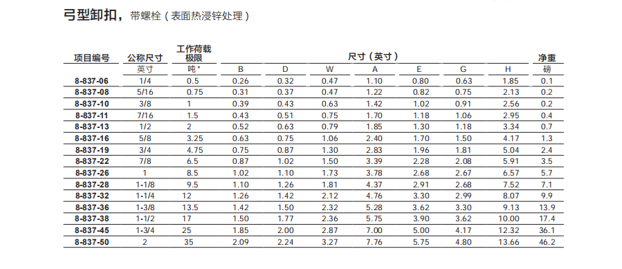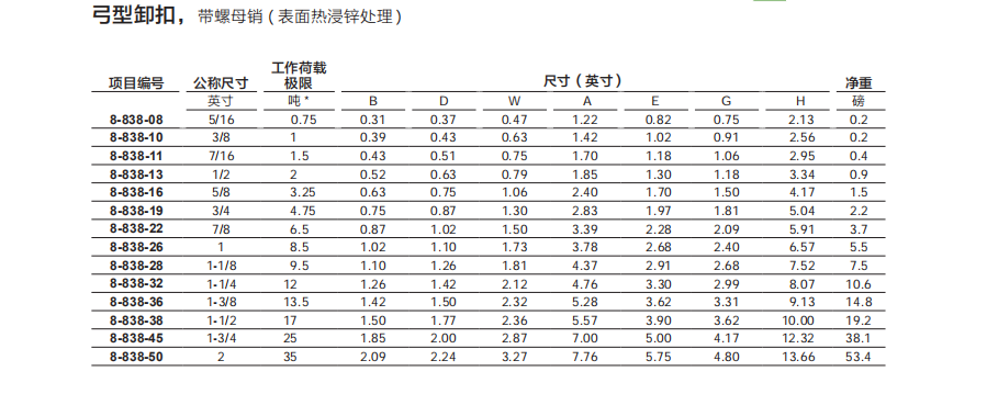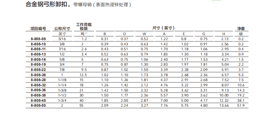 合金鋼弓形卸扣 ( 表面熱浸鋅處理 )