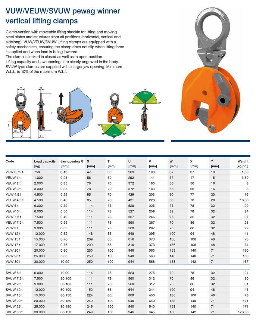 pewag培瓦克豎吊起重鋼板鉗VUWVEUWSVUW型